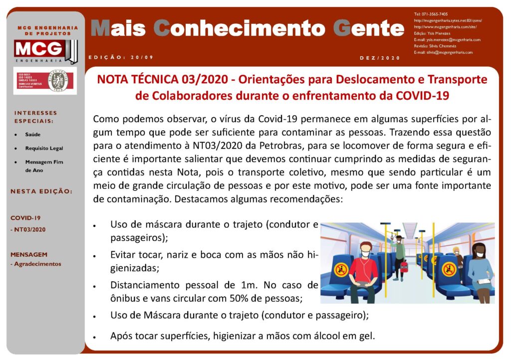 NOTA TÉCNICA 03/2020 – Orientações para Deslocamento e Transporte de Colaboradores durante o enfrentamento da COVID-19