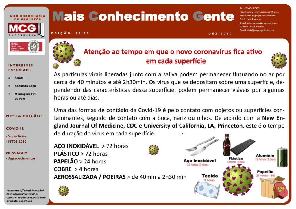 Atenção ao tempo em que o novo coronavírus fica ativo em cada superfície